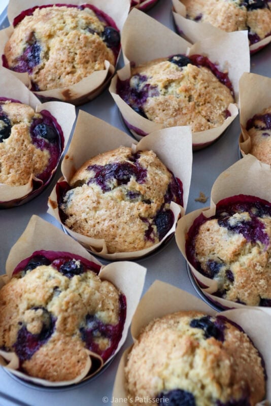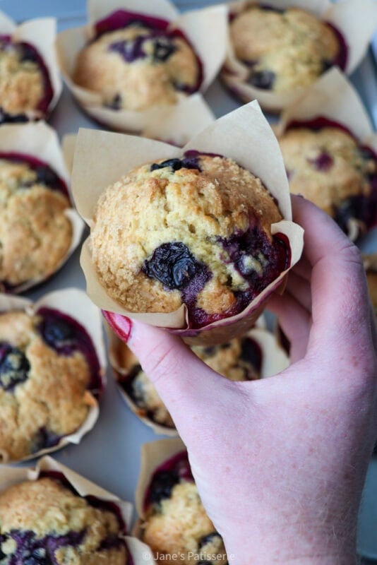 They are moist, full of blueberry flavour with the zing of lemon zest, and a crunchy brown sugar topping adds another texture level which is delicious